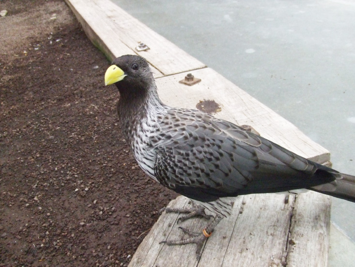 黄色いクチバシが目立ち、ちょっと猛禽の鷹のような姿です。