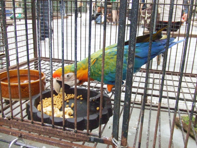 昼間は木の上の方にいたヨウムさんも降りてきてご飯を食べていました。